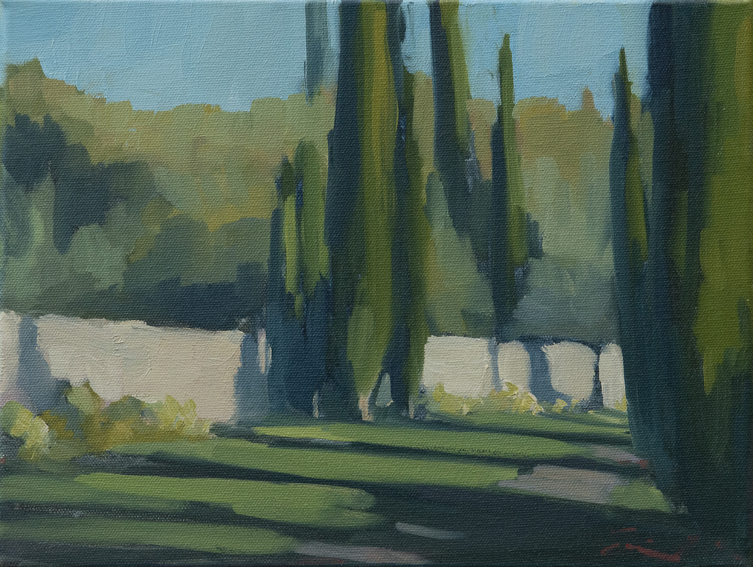 Cypress Trees against the Old Wall